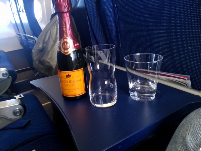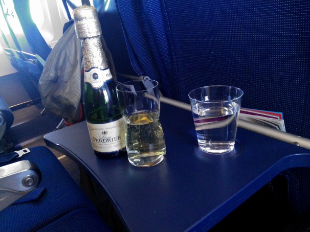 Efter detta slank två flaskor mousserande ner. Det gällde ju att utnyttja att man betalat för flygningen...