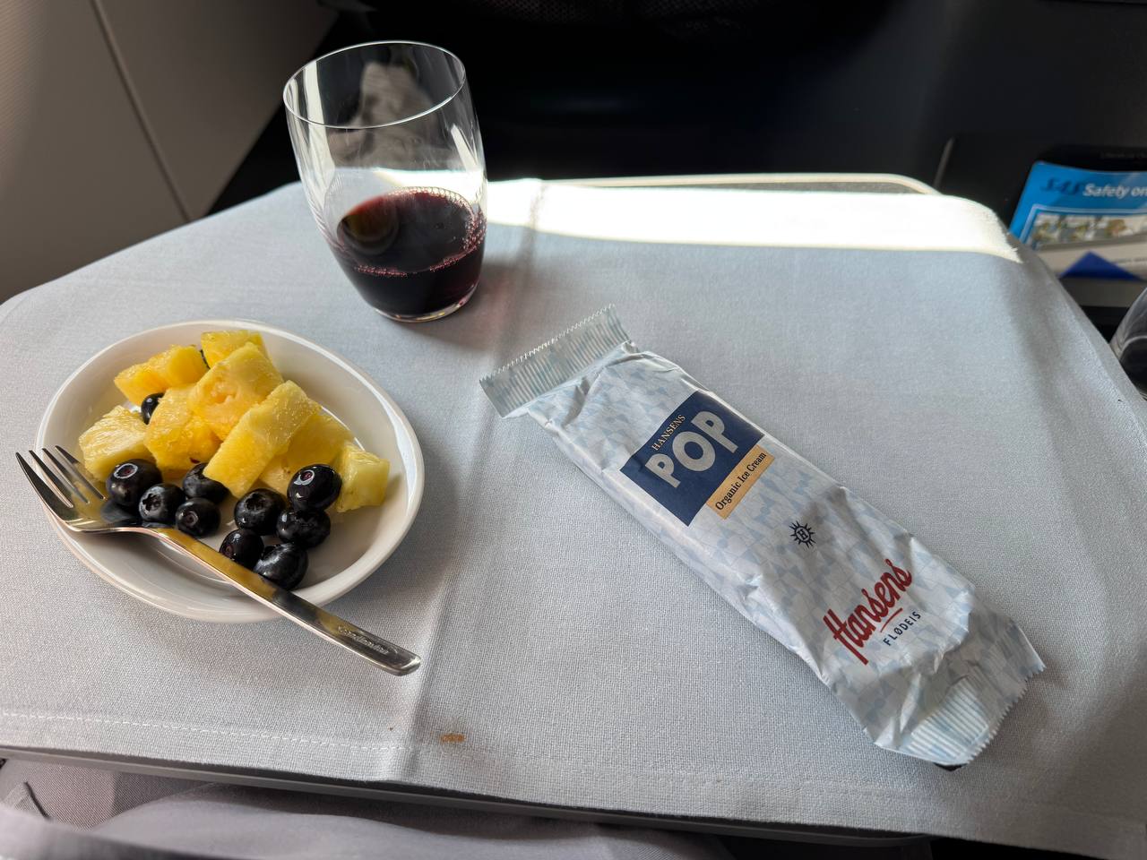 Väl på ämnet mat (inte i business) så har man gjort lite nedskärningar i matserveringen i ekonomiklass. Ost och kex numera borta från brickan, i alla fall på avgångar från Newark. Bilden tagen på SK904 för tre veckor sedan. Inte heller någon dressing till sallad/förrätt. Bortsett från det tycker jag att maten på SAS håller bra standard även där bak.