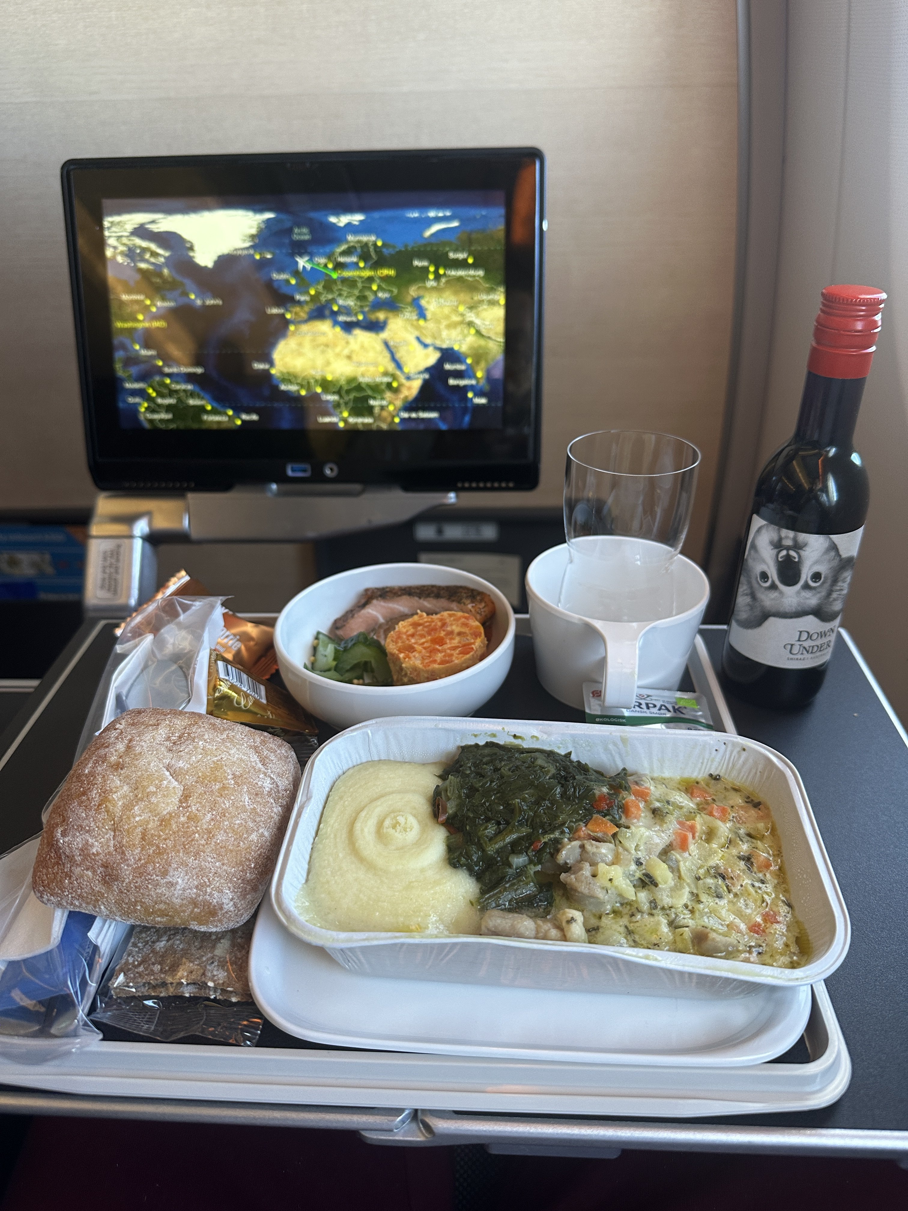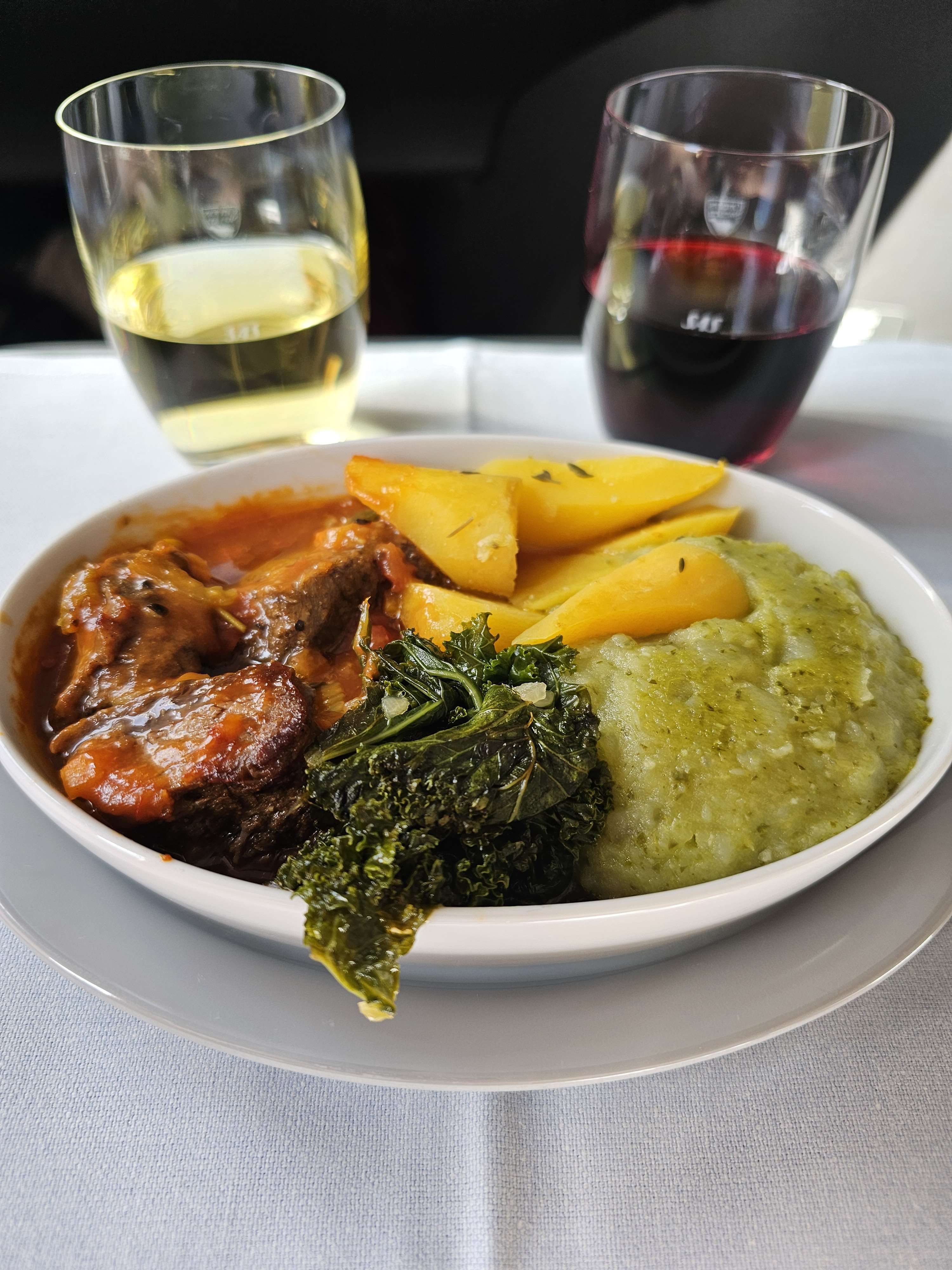 Även i Plus håller maten hög standard. Väldigt god förrätt bestående av varmrökt lax och en morotskaka av något slag. Varmrätt bestående av kycklinggryta, potatismos och spenat. Enda klagomålet är brickan som har krympt och numera saknar efterrätt. Den har ersatts av en liten chokladbit.
