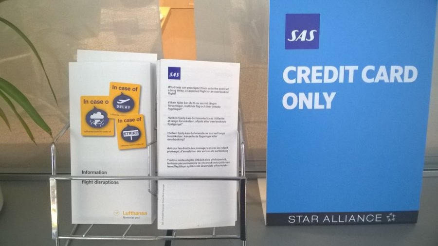 Varför gissa? Jag gick just förbi ticket office på Landvetter och kollade istället. Så här ser det ut, SAS och Lufthansas info bredvid varandra: rsz_wp_20160425_20_29_43_pro.jpg