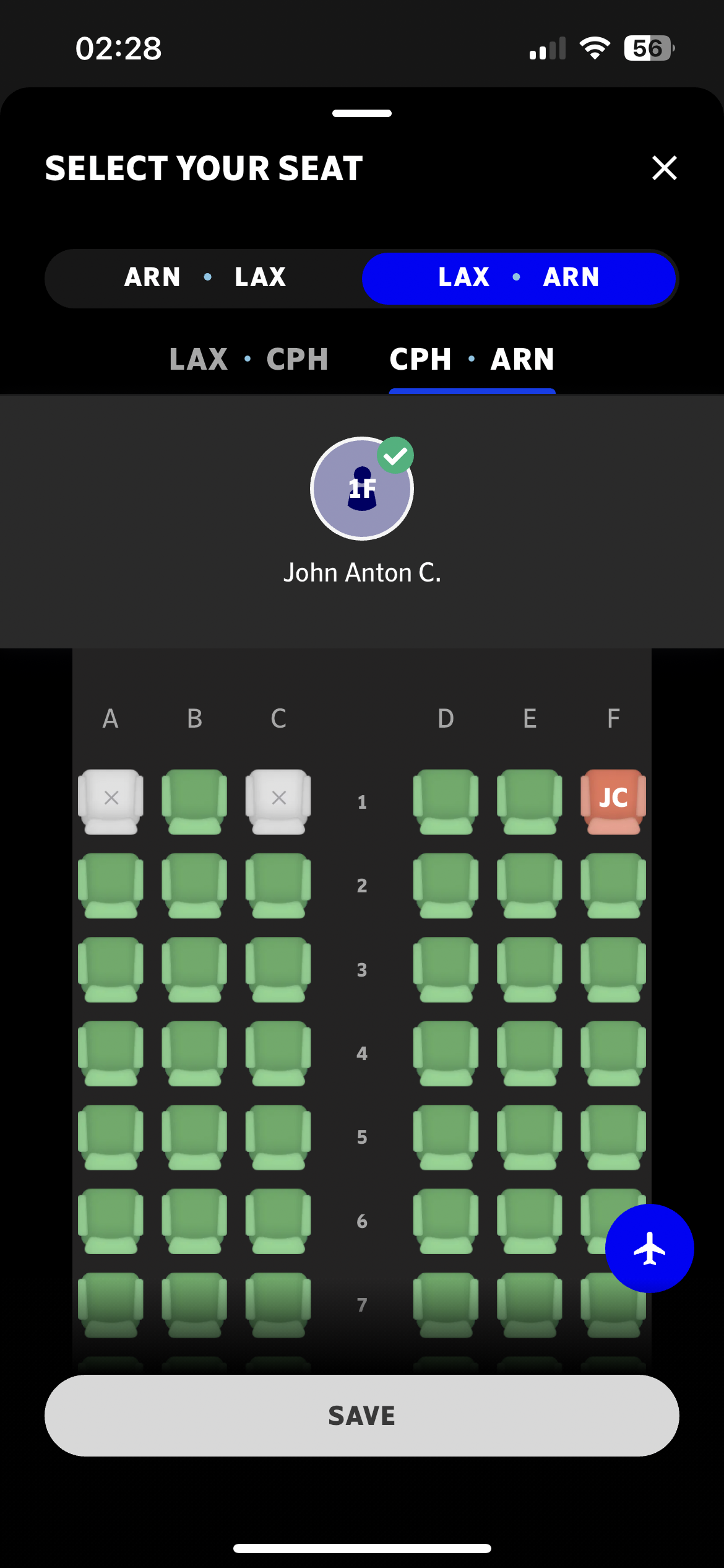 Samma här. Allt skedde plötsligt. Känns osannolikt att plus flyttats från rad1-2 till rad1-16(ish). Men det kan ju stämma...Alla mina förvalda plaster på de flyg jag är bokad i Go har ändrats för veckan efter nästa. Enligt platskartan är det t.ex. 17 rader Plus på ett förmiddagsflyg från Paris till Stockholm. Visst, det är inte omjöligt men det är i så fall första gången jag ser så många Plusrader på den sträckan en förmiddag.
