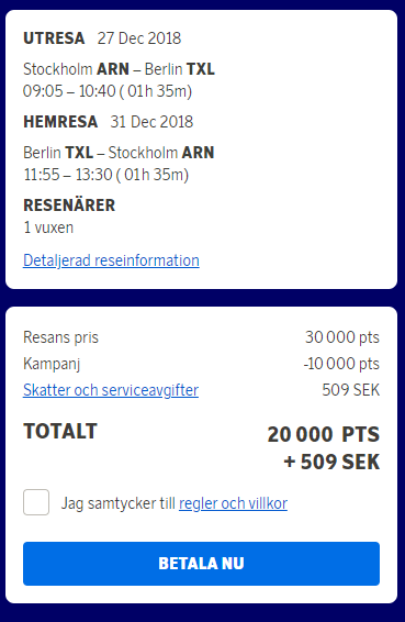 Får den inte att fungera med flypremium via vanliga hemsidan, den sätter ner priset till 20k poäng för plus, även fast jag väljer flypremium rabatten så går det inte ner till 12k.