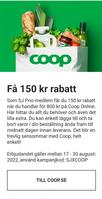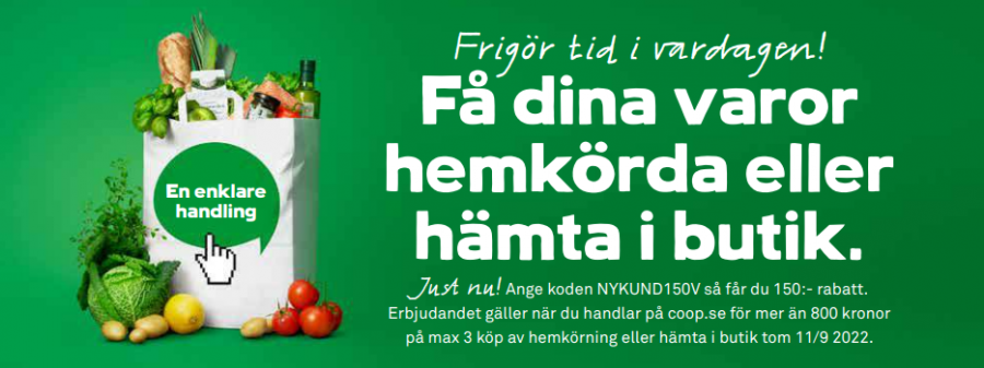 Denna funkade ej för mig alldeles nyss... andra som har samma problem?Snålkoden SUPERMANAD ger gratis leverans- och plockavgift vid köp över 800 kr. Gäller t.o.m. 4/9 2022.