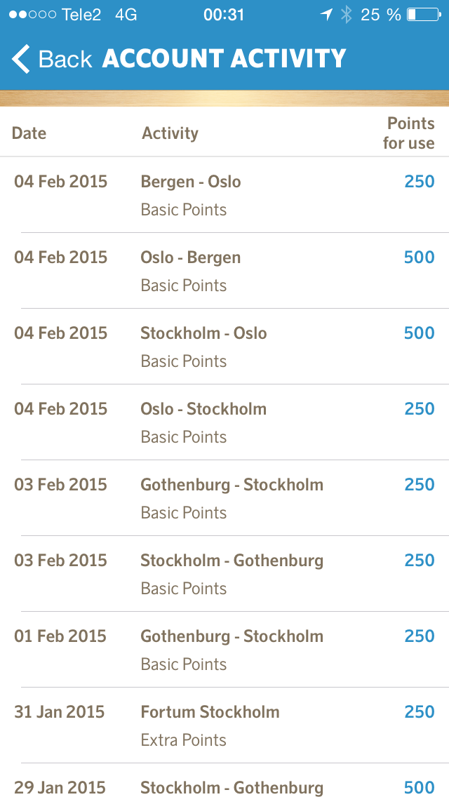Själv gjorde jag en riktig run-flight i torsdags. SK till CPH från ARN i Go. 2000kr och 500 poäng. Haha. Värdelöst.