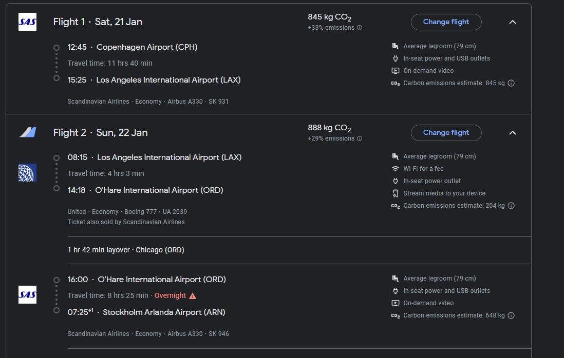 Men ännu bättra vore att byta till CPH-LAX-ORD istället, därmed tjäna ännu mer poäng? Kanske missar natten i Chicago, men kan vara en natt i LA istället och en bra slant mer poäng. Är det teoretiskt möjligt, med reservation vad agenterna på GOT eller CPH är villiga att göra...
