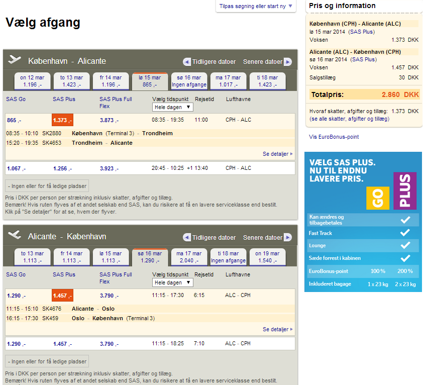 Wideroe.no, avansert søk, multipla destinationer. Billigare är nog att flyga CPH-OSL-ARN.