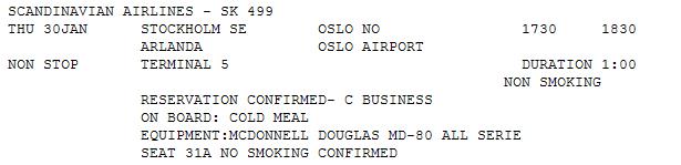 Råkade av en slump ramla över en gammal bokningsbekräftelse från 2003. C-klass mellan ARN-OSL i en MD80 och jag hade tydligen plats 31A (kommer faktiskt inte ihåg just den flighten...)