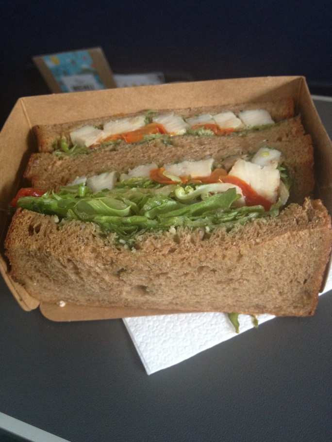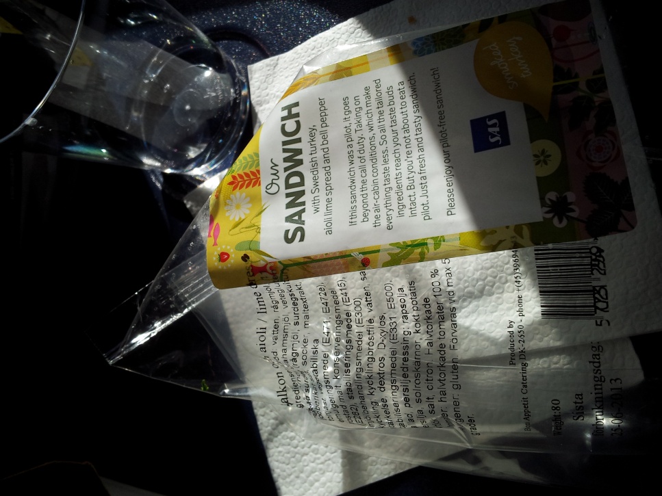 På resan ner hade man inte lastat mackor; så det blev en härlig 70% chokladbit, en kaffe och en Ramlösa. På vägen hem igår hade man mackor, men jag var inte alls hungrig.