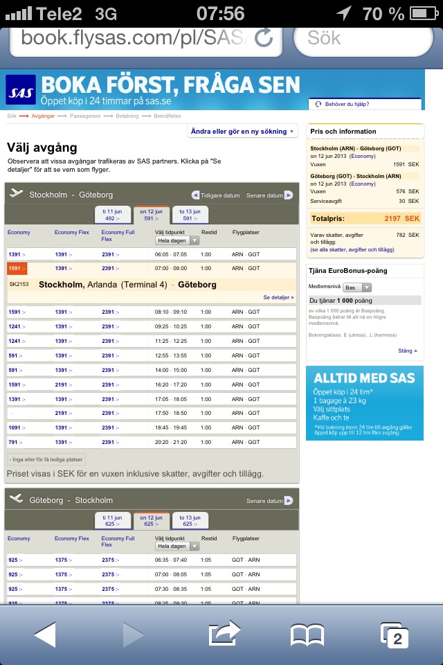 Grundpriset 2384+skatt verkar råda till de flesta SAS-destinationer i Europa från Arlanda.