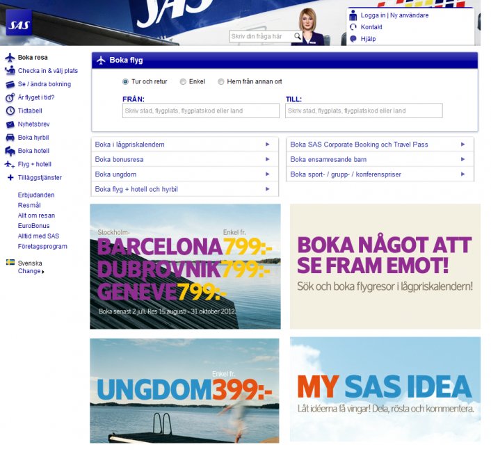 Jag gillar SASgroup webbsida personligen. Det är ändå lätt att navigera. Inte tung heller.