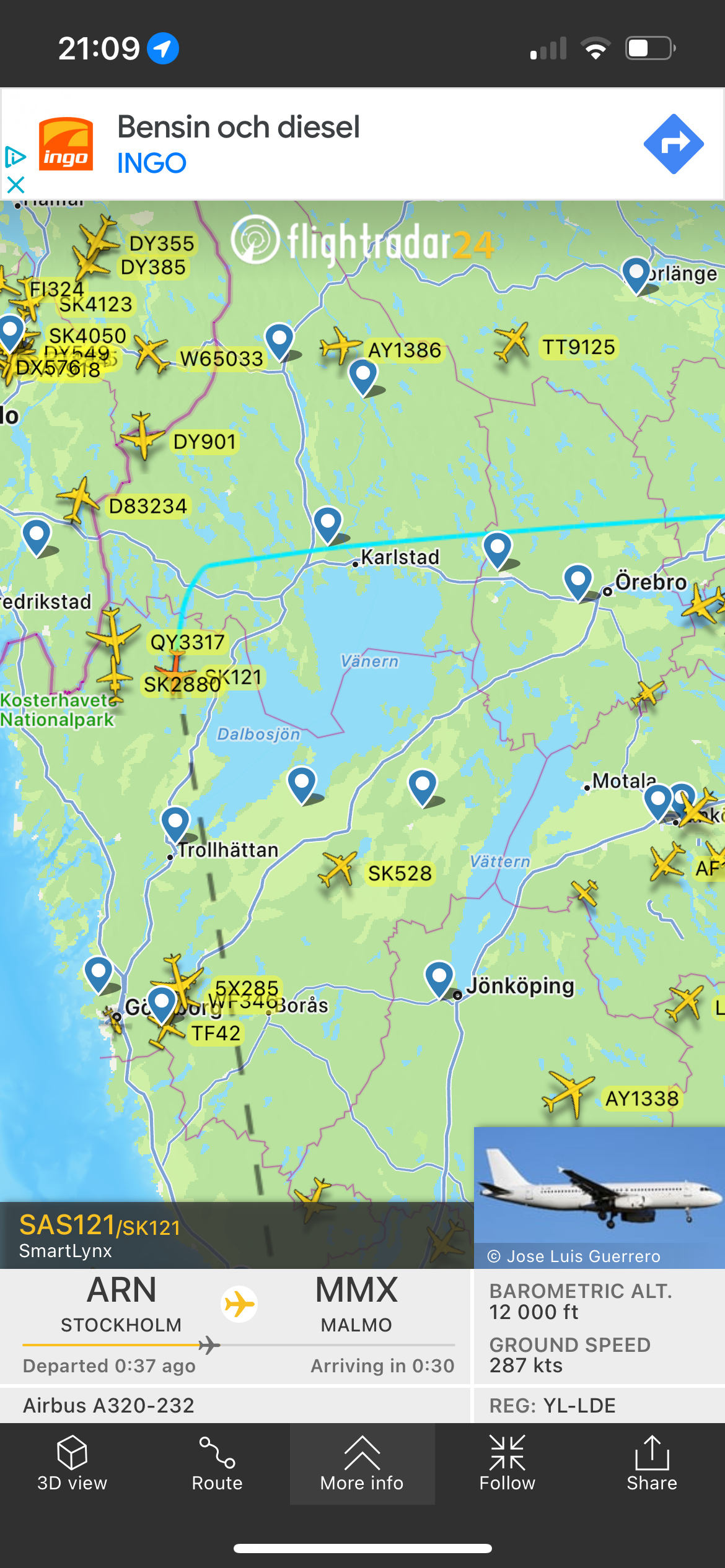 Flyget flögs också in precis innan från Tallinn, men landade efter avgångstid till Malmö, så just detta flygplan kan ju inte varit planerat att egentligen trafikera ikväll vill man ju tro? Känns ju kanske som den vart på service där möjligtvis? Men den låga höjden är ju också väldigt märklig.