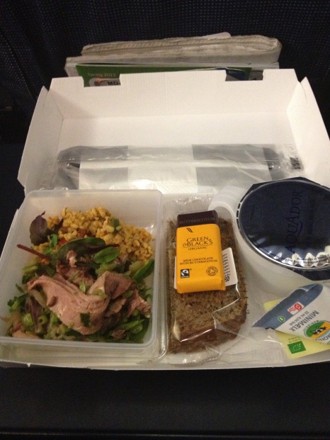 En annan klassisk och ganska obehaglig kall måltid i SAS Y. Nu är jag förvisso ingen fan av cous-cous men denna är verkligen dålig. Synd på biffsalladen som annars är ganska hygglig.