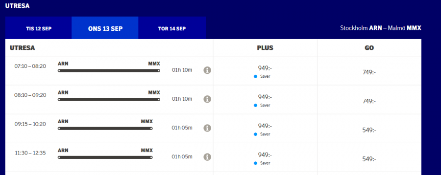 SAS Plus Saver på Stockholm->Malmö: (Det står ingår inte)
