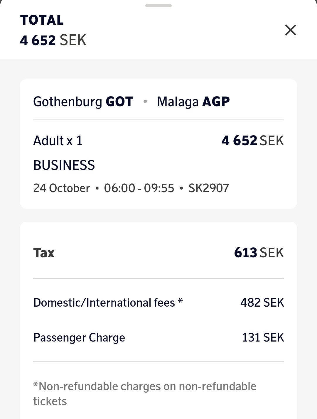 Tror också priserna i kommande business var ännu högre när försäljningen startade 6 maj, så priserna kan ändras.