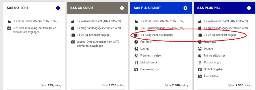 Från hemsidan:Nu står det att vissa plus-biljetter bara inkluderar ett incheckat bagage. Fel på hemsidan, eller något nytt påhitt?
