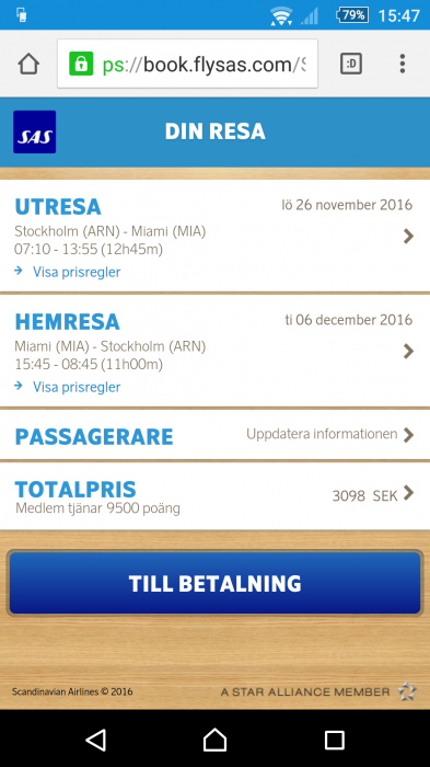 Kollade då ordinarie bokningsajten avgång MMX. Funkade dock med priser från runt 8.000kr.