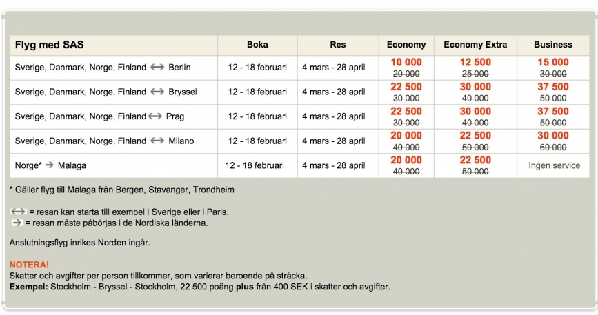 SAS point bargains, boka t.o.m 18:e februari 2013