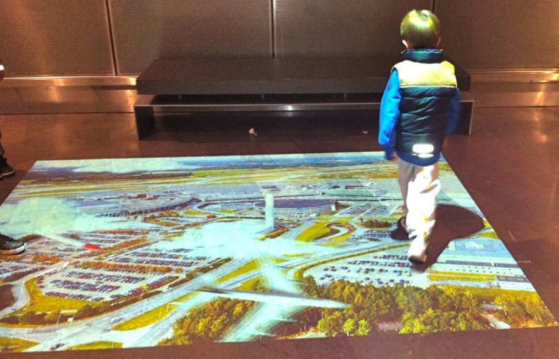 En projicerad bild av Arlanda med rörliga flygplan som man kan styra med händer eller fötter (till höger när man står framför ankomstutgången). Klart kul sätt att få femton minuter att flyga för en femåring med pappa. Nu hoppas vi att SAS Chicagoflight är lite sen imorgon också så vi får leka mer innan vi plockar upp nästa familjemedlem på drift :D