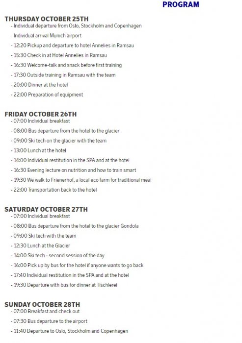 Du har fortfarande möjlighet att följa med på höstens ski-camp med fokus på längdskidåkning, träning, teknik och näring. En perfekt start på säsongen med massor av inspiration under ledning av skidlegenderna Odd Bjørn Hjelmeset, Timo Bakken, Anders Södergren samt en näringsfysiolog från ”Olympiatoppen” i Norge