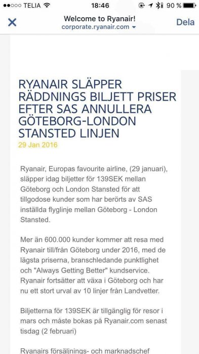 Ryanair var i alla fall snabba med ett pressmeddelande :rolleyes: Lite cred åt @MarcusC som skickade printen men jag passar på att posta den.