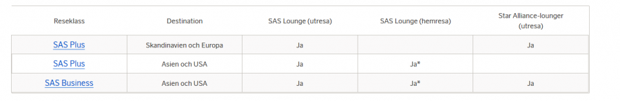 Tabellen suger tyvärr - den förutsätter att man läser den som att man är i Skandinavien och ska ut på en R/T. Om man bara ska resa till Skandinavien blir det rätt otydligt. SAS information i ett nötskal.Las tabellen igen, galler inte for Sas Plus for Asien o USA.