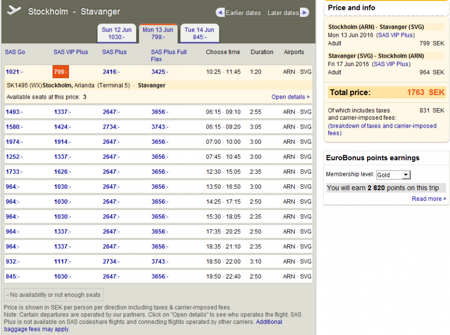 För min del blev det ca 1.800 SEK inkl. skatter för Stockholm-Stavanger T/R i SAS VIP Plus istället för ca 2.600 SEK inkl. skatter i SAS Plus.