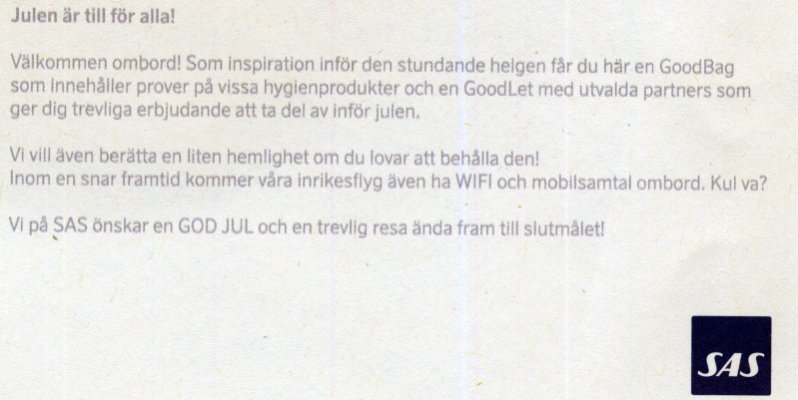 I häftet med reklam som SAS slängde i knäet och kallade present låg också detta