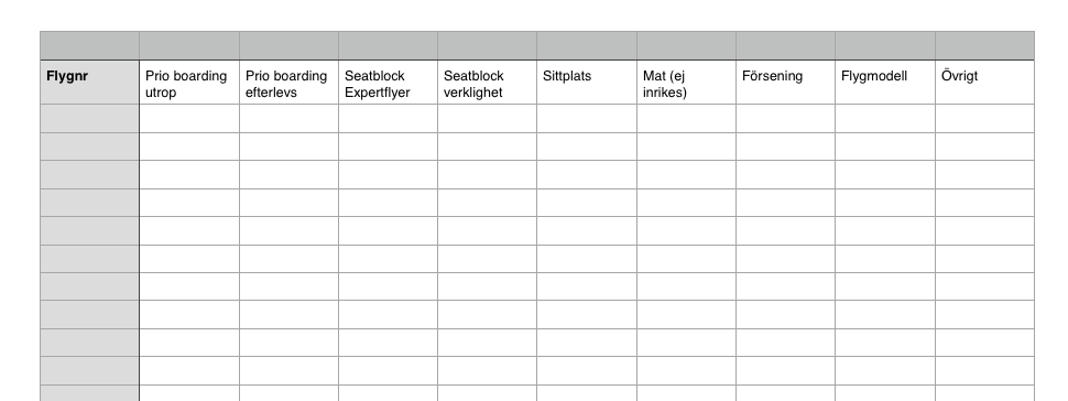 På mina 100 SAS flygningar framöver tänkte jag föra lite statistik. Något som saknas eller borde ändras? Visa bifogad bild 27405