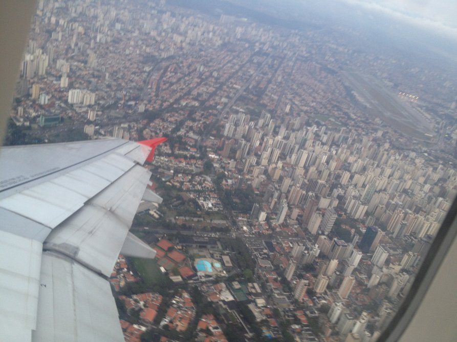 Nästa resa var från inrikesflygplatsen Congonhas i São Paulo, onormalt mycket kaos inne på terminalen, gaten byttes 4 gånger och det var inga glada miner bland affärsresenärerna som stod först i kön, många gnällde och sa "Ska vi behöva stå i kö i 40 minuter för att sedan byta gate och hamna sist?" Vi kom iväg till slut och fort, då banan är relativt kort. Tog några fina bilder direkt efter take off, för er som inte känner till CGH så kan jag berätta att flygplatsen ligger MITT i stan, och är känd för TAM Airlines Flight 3054 - Wikipedia, the free encyclopedia.