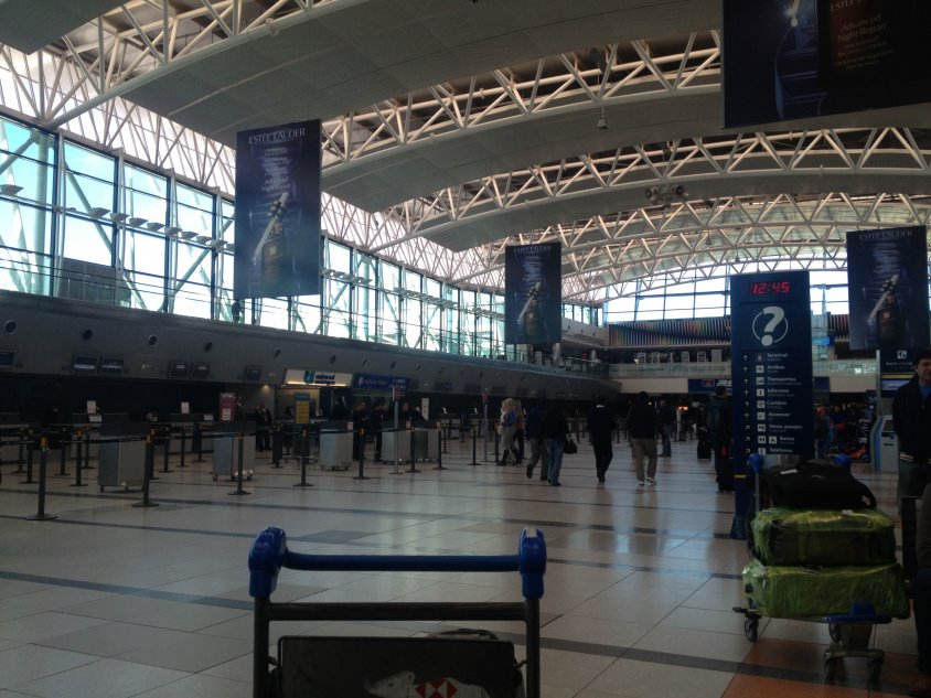 Från SDU till GIG tar man enklast taxi, bilarna är märkta med flygplatsens namn och det finns en speciell kö utanför vid gatan så att hoppa in i fel bil är ganska svårt. Jag pratade lite med taxichauffören och han sa att de utgår bara från SDU och kan köra vart som helst i Rio men de återvänder alltid till flygplatsen. Det känns ganska tryggt som turist om man ska byta flygplats mitt i natten. Ingen servering på flygningen mellan CGH-SDU på grund av åskoväder, det var konstant turbulens under flygningen. Väl framme i GIG så tågade jag in på TAM sala vip där jag fick veta att mitt flyg till Buenos aires skulle bli ordentligt försenat på grund av oväder och att hela flygplatsen hade stängts. Så jag satte mig ner och drack ett glas vin och surfade på datorn. Vi anlände ungefär kl. 01.00 lokal tid och nästa flyg skulle gå 16.00. Jag hade planerat ungefär hur jag skulle klara mig utan hotell över natten och trots att det var ganska jobbigt gick det över fort. Senast jag var där härjade åskmolnet från ett vulkanutbrott i Chile och jag blev strandad 26h med min sambo, därför kändes inte 15h så värst farligt. Under de 15h på flygplatsen sov jag kanske 6-7h på en restaurang som var öppen 24h, jag köpte något att dricka och att äta sen gav jag servitören bra med dricks så han kunde vakta mina väskor medans jag sov. När check in disken väl öppnade gick jag fram, lämnade mina väskor och fick en inbjudan till loungen. Loungen var ganska liten men riktigt fräsch och utbudet var helt OK.