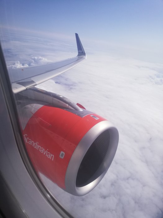 Bra där, jag glömde den obligatoriska bilden på motorn.Säteskartan visade fel och det finns några lediga säten. Som tur var är ett av dem bredvid mig.