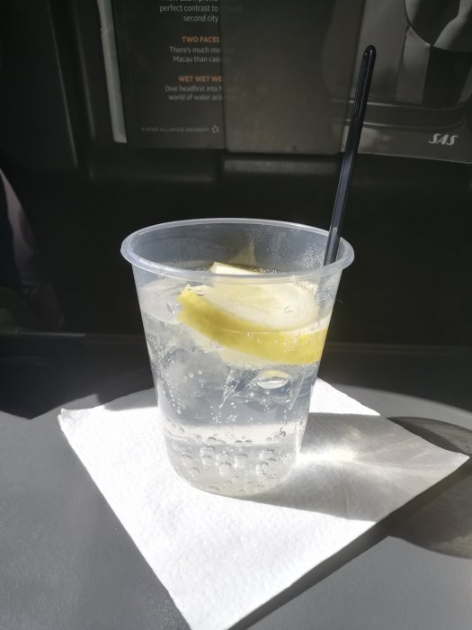 Plastmugg... Vart är SAS plus påväg...Jag fastar inför lunchen i Silverkris F-lounge, men lite norsk enbärssoppa måste vara OK? Visa bifogad bild 95761