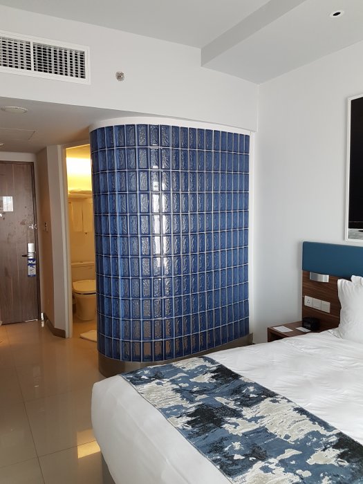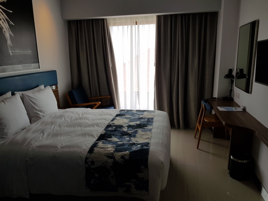 Min väska kommer bland de första och nu ska jag alltså försöka få tag på en Taxi till mitt hotell som ligger ca 1,5km bort. Har ingen större lust att släpa väskorna även om det hade gått bra att gå sträckan om man velat. Först gör jag ett försök med Uber men det är lönlöst, de är tydligen inte välkomna på flygplatsen. Går istället ner till taxi-gänget och de vill ha 100.000 pengar för att köra mig till mitt hotell, Uber skulle ha kostat 17k så man känner sig ju rätt blåst men inte så mycket att göra, det är trots allt bara ca 70 kronor. Min chaufför kör mig till Holiday Inn Express Baruna där jag ska bo första natten och jag börjar förstå vad de menar med trafiken här. Chauffören försökte även få mig att betala flygpaltsavgiften vilket jag inte hade någon större lust med då de redan fått överbetalt