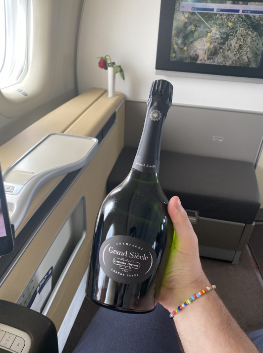 Efter landing, när vi stod och väntade på att en trappa skulle koppla ihop sig med flyget, så kom den yngre flygvärdinnan ut med en liten avskedspresent! Kosher eller inte, oavsett så var det väldigt uppskattat! Som en konsekvens var vi tvungna att checka in en väska, ifall vi ville spendera tid i FCT inför kvällsflighten. I-landsproblem att hantera
