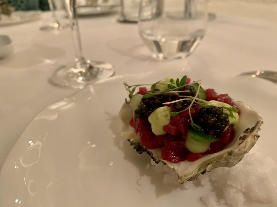 Ostronet i porslins skalet var mycket gott - men det var ett ostron som öppnats och man sen bytt skal på.