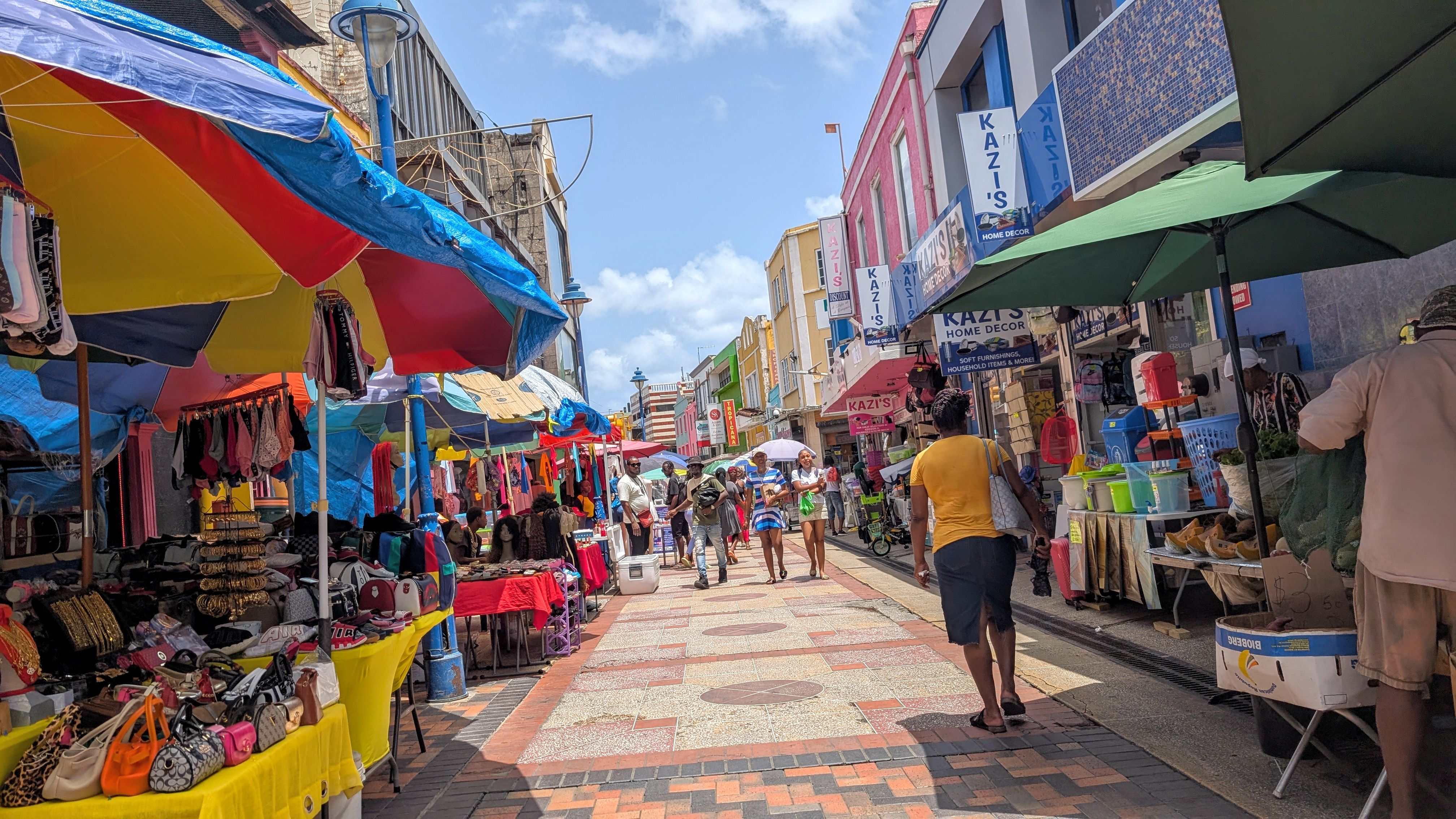 Färgrikt på gågatan i Bridgetown