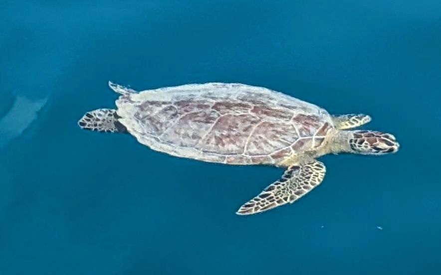 Det var utdelning direkt med en havsskjöldpadda i hamnen