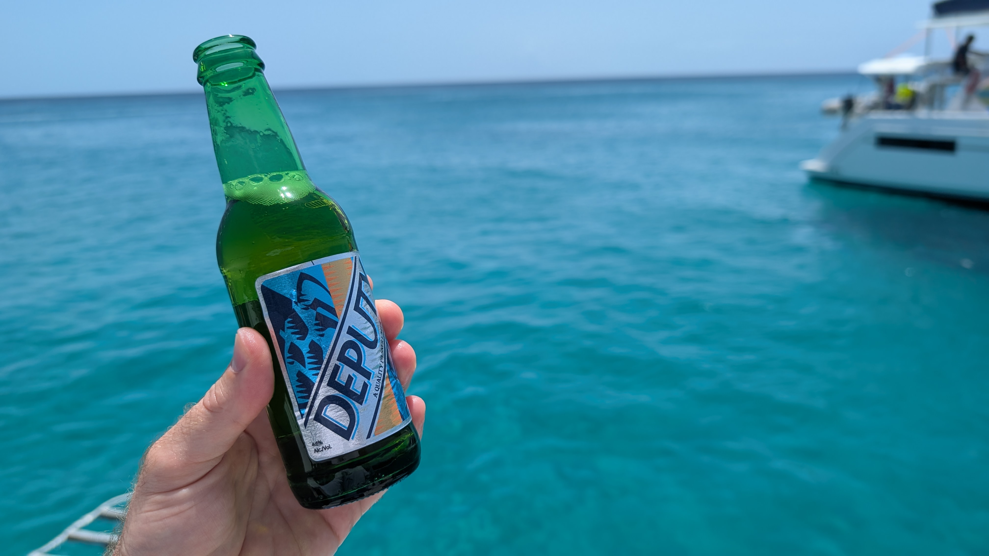 Barbados västkust är generellt sätt lugnare mht vind och vågor. Sydkusten, där vi bodde, var aldrig stilla, men ändå inga stora surfbryt. Enligt utsago är östkusten surfarnas häng, med hela Atlanten framför sig. Väl i Bridgetown var det givet att pinna över till Carlisle Bay, precis söder om Bridgetown. Denna bukt är som ett vykorts-motiv med starka kontraster mellan kritvit strand, turkost hav och knallblå himmel. Detta till tonerna av en Banks pilsner... Kan föreställa mig att det är en köttmur här de dagar det är kryssningsfartyg i stan.