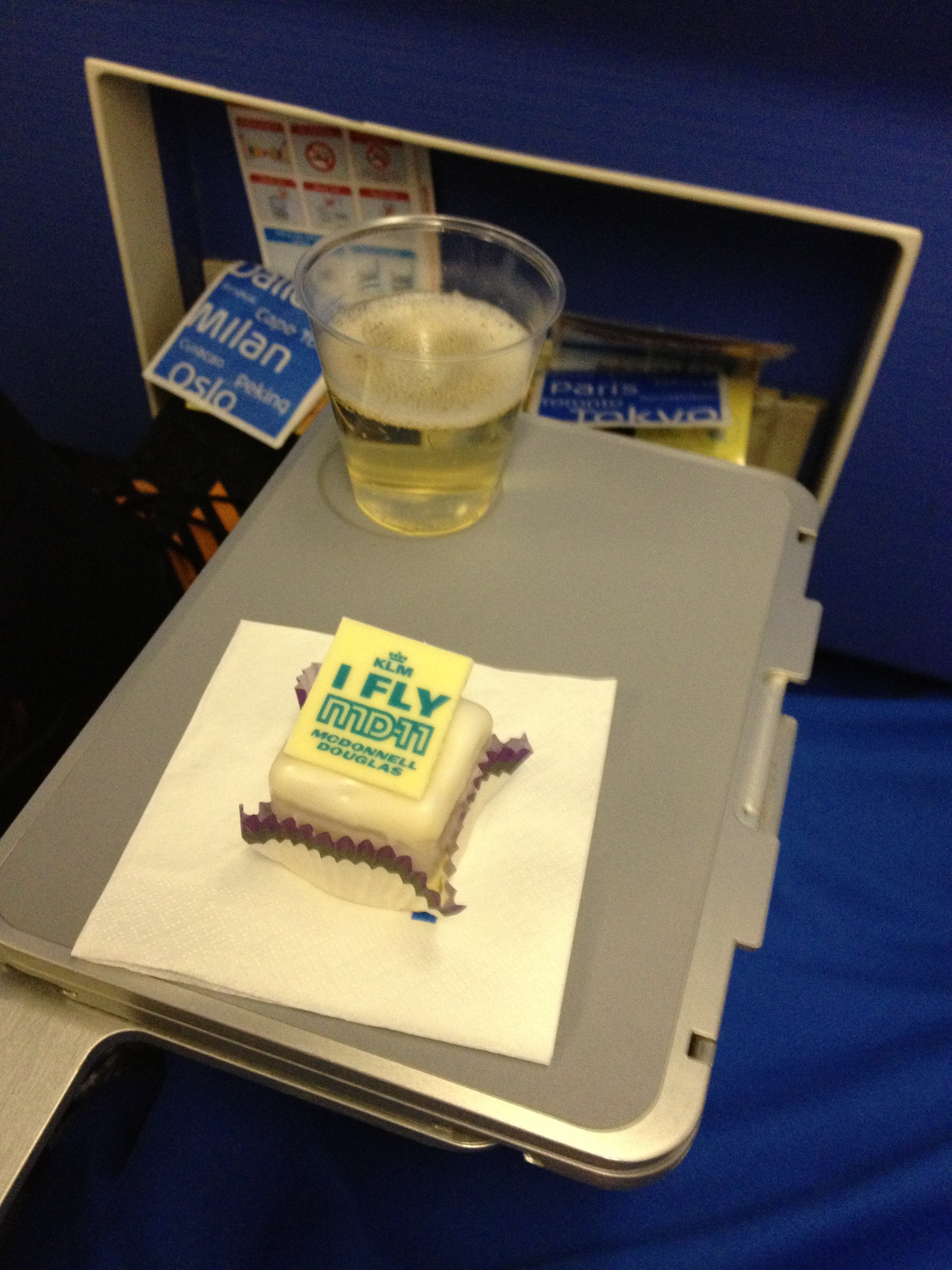 KLM bjöd alla ombord på en fin bakelse och ett glas Champagne. Mycket trevligt och hela planet tömdes på den ädla drycken. Alla ombord fick också ett fint certifikat och över högtalarna berättades det flera gånger att flygningen var den sista. I gångarna var det mycket spring. Folk med KLM och MD-11 motiv på t-shirts berättade gamla historier och folk hade rest från olika delar av världen för att vara med på sista flygningen. Självklart hade flera gjort en tur-och-retur samma dag med samma plan.