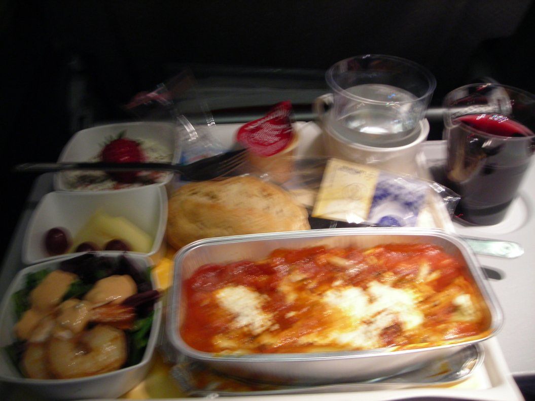 De tre värdinnorna såg jag, då draperiet inte var fördraget till galley, fick sin lunch serverat på en stor bricka. Var ligger den logiken? För kort flygtid för att hinna servera mig, som ensam passagerare i C, men ändå gott om tid att sitta och äta en flerrätters lunch som personal? Jag förstår mig inte på det hela.