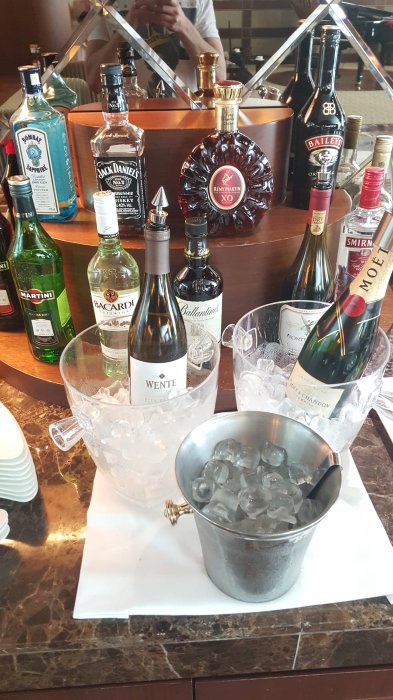 Dom börjar rota i dryckesvagnen, som är undanstoppad, och mycket riktigt är det gamle Jack. Medan dom rotar ser jag en blå flaska skymta förbi, så jag ber istället om en GT innan jag går tillbaka till min plats.