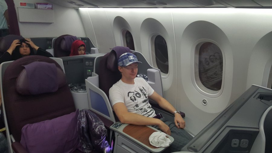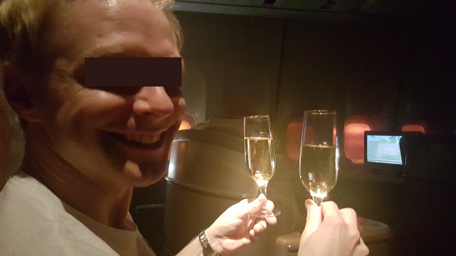 Gubben på 2A tar ett glas mjölk pre-flight och döps därmed till Stig-Helmer för resten av resan. När jag går upp och ska fota lite ser jag att även 4K nu blivit upptagen, men det visar sig vara en pilot.. hade ju varit förkastligt att tvingas dela champagneflaskorna med nån under dom kommande 11 timmarna!