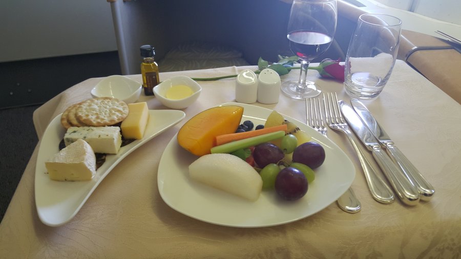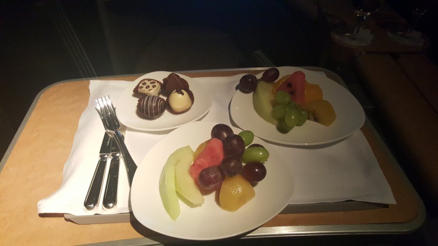 Vi förflyttar oss ganska snart till 4E/4F för att inte störa Stig-Helmer. Mättnaden har lagt sig så tillsammans med ett par glas champagne beställer jag även in en till frukttallrik.