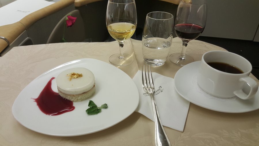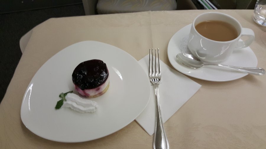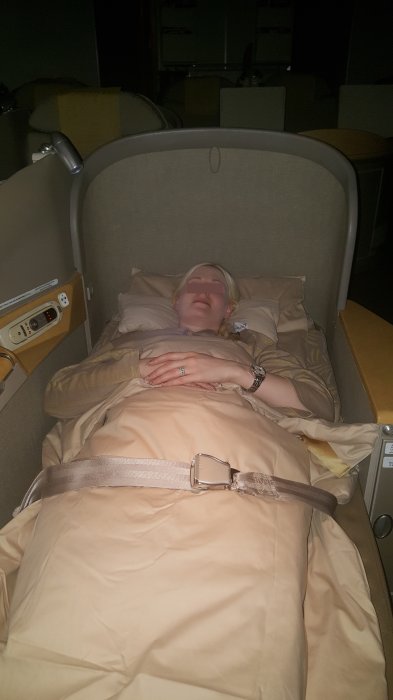 Vi väljer att skippa efterrätten/osten för att istället fokusera på att få lite sömn. Fäller sätet, dra upp filten och fäller ner kepsen..