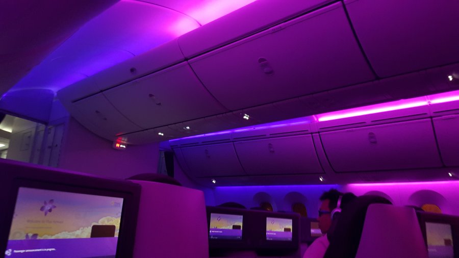 Under taxing knäpps det på lite skönt mood light i kabinen.