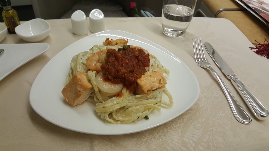 Fru Hylve tar istället pastan med räkor och lax som även den smakar otroligt bra!