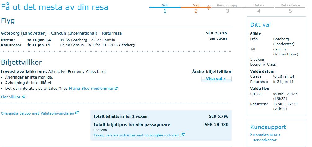 Hur många personer som skall resa? 4st vuxna och en 13-åring (5 vuxna?)