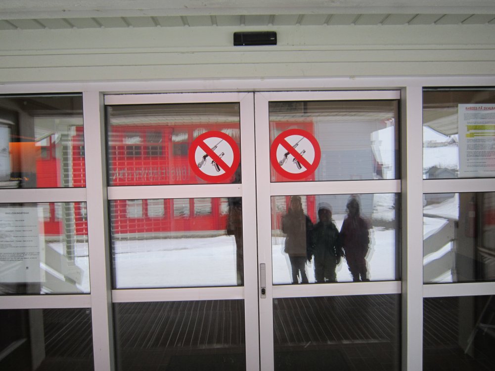 Vår guide var en norrman samt Terese från Jönköping som hade bott här i två och halvt år. Jag passade på att prata med henne lite om livet i Longyearbyen. Hon trivdes mycket bra, det mesta fanns ju, kompisar, pubar och restauranger, men nackdelen var när man skulle åka någonstans. En av fördelarna med att arbeta på Svalbard är att man enbart betalar 15% skatt, arbetsgivaren står ibland för logi. Terese berättade vidare att dom typiska invånarna var norska barnfamiljer, från ”fatslandsnorge” som bor här 4-5 år. Det intressanta är vidare att Norska staten har sedan 1990-talet haft som strategi att göra om Longyearbyen från en ”Company Town” till ett ”familjesamfunn”. Detta märks när man är ute och går i byn, det finns tre dagis, man vill bygga ett fjärde, samt mängder med mammor som är ut och går med sina barnvagnar.