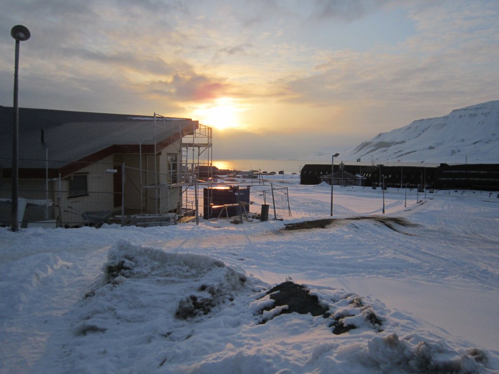 Vi anlände en torsdag runt 23.30 och hade en spektakulär inflygning, även om det var lite mulet närmast Longyearbyen. Transporten från flygplasten kan antingen göra med buss, eller taxi. Priset för två vuxna med bussen är 100 NOK och med Taxi 120 NOK, resan tar ca 15 min. Vi inkvarterade oss i en lägenhet på Radisson Blue, som är försedd med en våningssäng(120+90 cm), samt en bäddsoffa, som var långt ifrån bekväm. I lägenheten finns ett litet pentry med två kokplattor, kylskåp och basal köksutrustning.