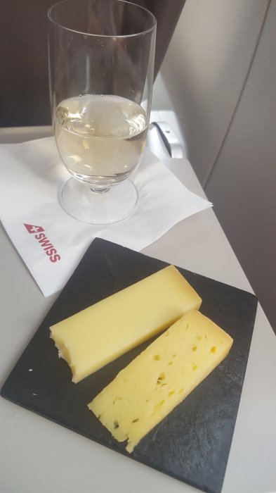 Kall mat denna gång (för att det är kortare flygning, eller senare på kvällen?), men ändå fantastiskt god. Återigen ost, trevligt!